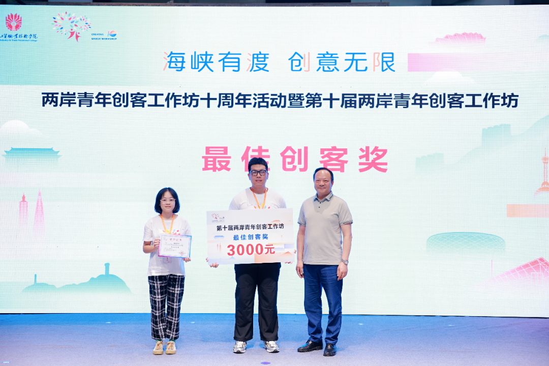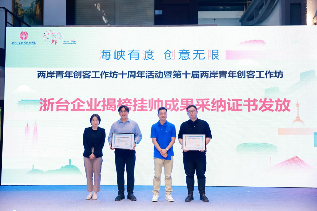 本次两岸青年创客工作坊新增浙台企业揭榜挂帅项目,两件作品分别获得浙江东池控股有限公司和浙江云合光学科技有限公司两个公司的成果采纳。