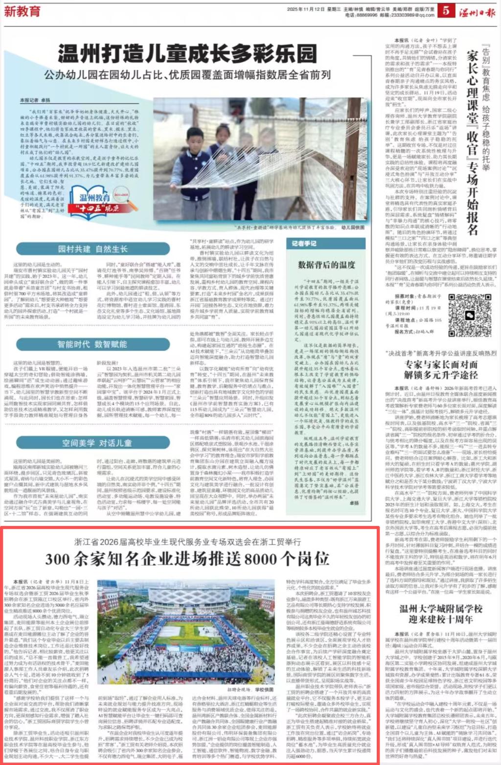 温州日报:浙江省2026届高校毕业生现代服务业专场双选会在浙工贸举行300余家知名企业进场推送8000个岗位