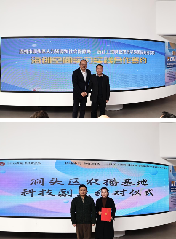 现场,浙工贸还与洞头区东沙不夜港海创空间就实习实践合作进行签约,并举行科技副总结对农播基地仪式。浙工贸有关负责人表示,此次活动展现了学校在数字经济、跨境贸易、智慧物流等领域的教学与实践成效,是校地融合、产教协同的一次生动实践。未来,学校将继续深化与洞头区的合作,拓展校企合作维度,优化课程体系与人才培养模式,推动专业教师面向洞头商贸流通、海岛农特产品、电商直播、智慧物流等行业开展人才科技对接活动,共同推动校地合作深入发展,为区域高质量发展持续输送高素质技术技能人才。