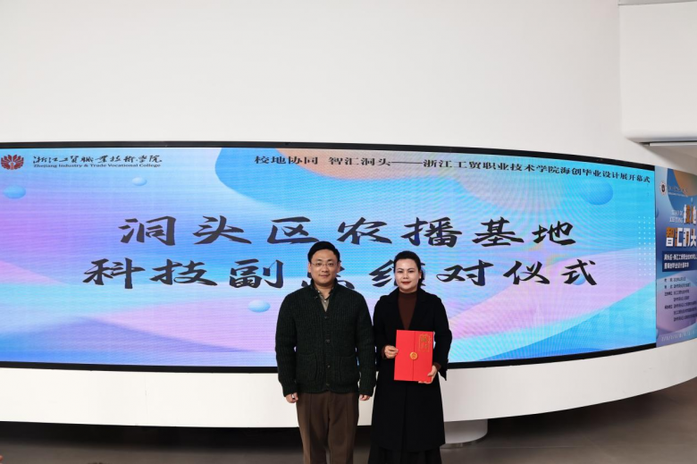 现场还举行了系列签约与授牌仪式:洞头区海创空间实习实践合作签约,为学生搭建起稳定的实践平台;科技副总结对农播基地,助力洞头乡村振兴与农产品电商发展;优秀毕业设计成果颁奖与“发展合伙人”授予仪式,则表彰了突出学生与合作企业,彰显校企协同育人成效。