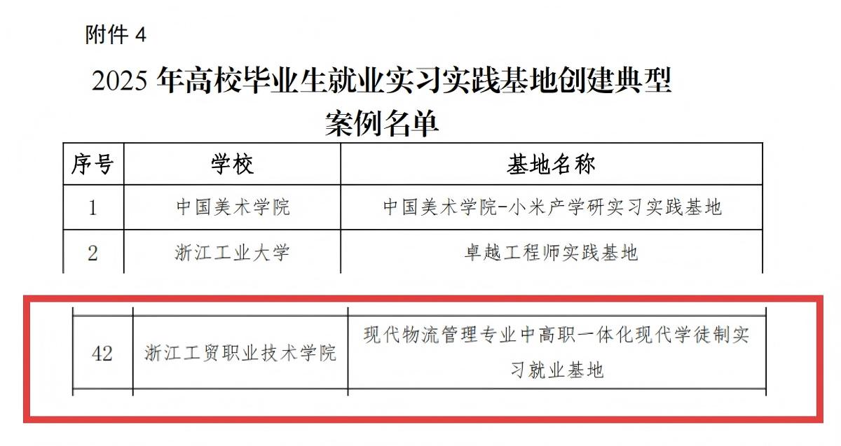 近日,浙江省高校毕业生就业创业指导服务中心公布《2025年高校毕业生就业典型遴选结果》,浙江工贸职业技术学院凭借在数智就业服务与产教融合实习基地建设方面的突出实践,2项案例成功入选——《构建“三化三式”数智就业新生态打造高质量充分就业新标杆》获评“高校毕业生就业工作典型案例”,《物流管理专业中高职一体化现代学徒制实习就业基地》获评“高校毕业生就业实习实践基地创建典型案例”,充分彰显学校在毕业生就业育人领域的特色优势。